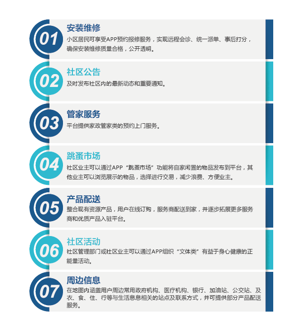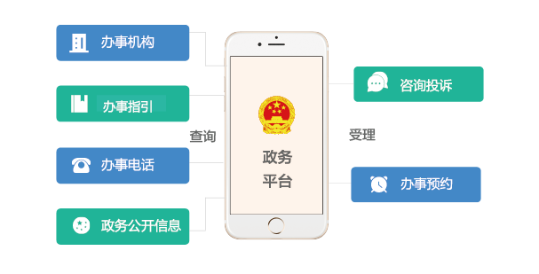 通过“智慧城市”APP政务服务平台,可以发布办事机构、办事电话、办事指南、政务公开信息供社区业主查询,同时受理社区业务的资讯投诉和办事预约,从而实现社会政务的在线化。