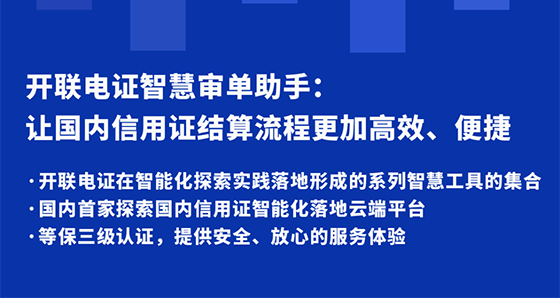 作为聚焦国内信用证银企全流程数字化处理的开联信息技术有限公司提供的“智能审单”免费软件,主要针对交易银行业务中流程最复杂、技术要求最高的信用证业务,提供智能单证管理、智能审单、发票验证等自动化处理功能,其人工智能应用实践,重塑了交易银行业务流程。