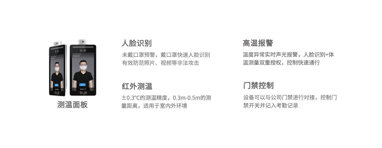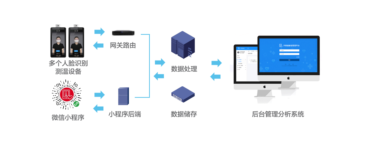 在抗击新冠肺炎疫情的攻坚时刻,全国各地陆续进入了复工复产的高峰期,如何有效地防控疫情,保证安全的生产生活至关重要。开联信息技术有限公司充分发挥AI人脸识别技术结合红外热成像技术的赋智赋能效用,推出了AI人脸识别测温管理系统,有效地提高了人体测温筛查效率,降低了交叉感染的风险。该系统广泛地应用于社区、学校、园区、车站、企事业单位等场所,实现非接触式无感测温,并结合身份信息采集和大数据分析,更好地对抗击各种疫情进行有效管控,通过技术手段将抗疫进行到底。